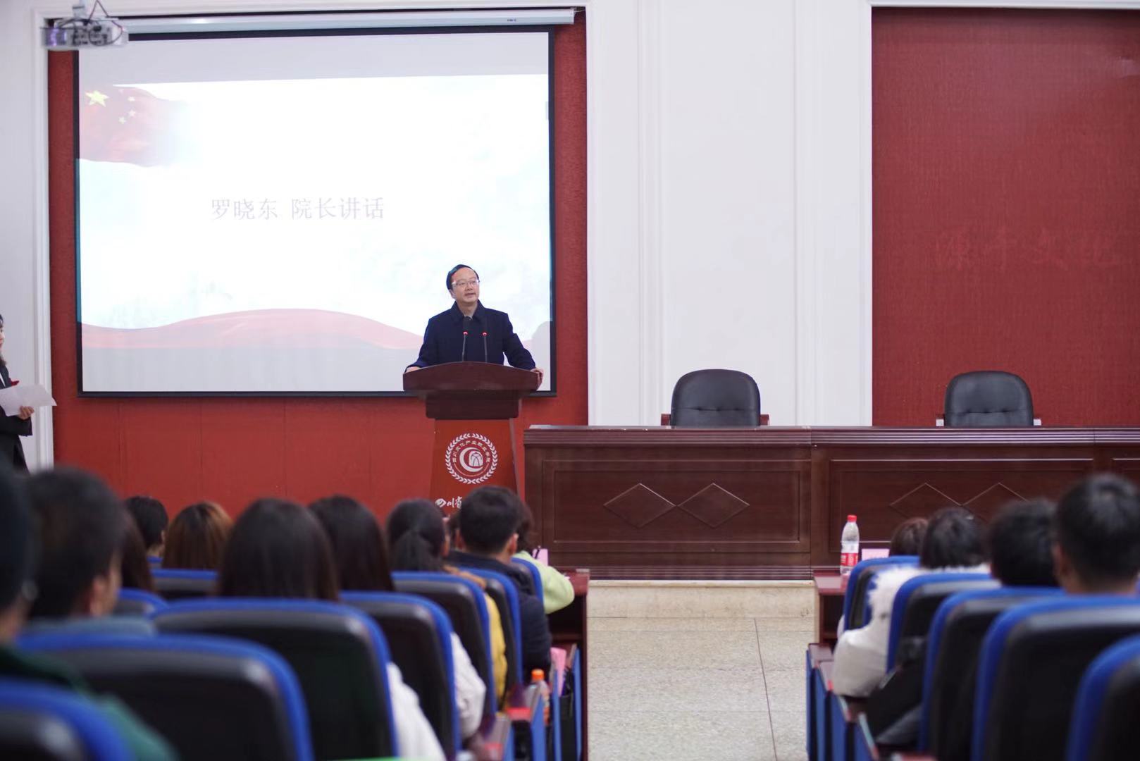 会上,罗晓东院长首先对2019年暑期“三下乡”社会实践活动给予充分肯定,并代表学校向获得表彰的单位、团队以及个人表示祝贺。他在讲话中指出,今年暑期 “三下乡”活动特色鲜明,充分结合学校专业特色开展,是青年学生专业知识拓展鲜活的课堂。他对青年学生提出三点希望,一是加强实践锻炼,勇于面对困难,迎难而上,珍惜实践锻炼机会;二是学会实践方法,主动思考将专业知识充分运用到实践过程中,在生动的社会实践中解决问题、收获真知;三是承担实践责任,让社会受助者受到感染,让自身为社会创造价值,获得价值收益感和成就感。最后他要求,学校各级团组织在今后的实践活动中要进一步有效设计活动内容、丰富活动形式,总结经验、探索创新,深化实践育人成果。